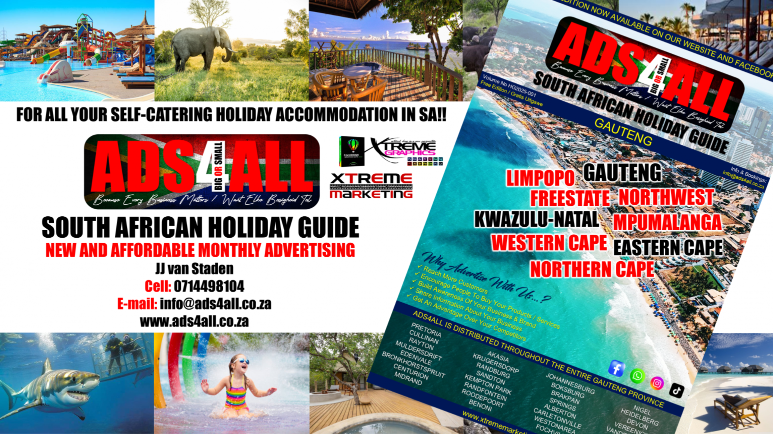 Ads4All SA Holiday Guide was designed specifically for the entertainment and hospitality industry where lodges, resorts, parks, hotels, guesthouses & venues in and around South Africa will have the opportunity to advertise their businesses in.
